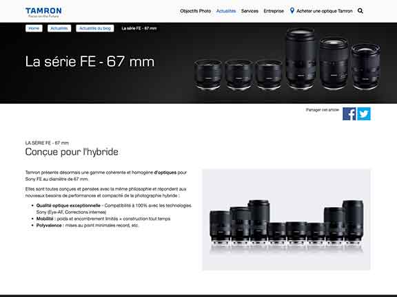 Tamron présente désormais une gamme cohérente et homogène d’optiques pour Sony FE au diamètre de 67 mm.