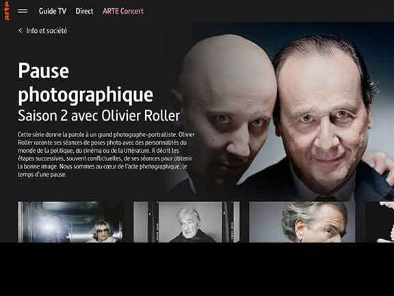 Cette série sur Arte donne la parole à un grand photographe-portraitiste. Olivier Roller raconte ses séances de poses photo avec des personnalités du monde de la politique, du cinéma ou de la littérature. Passionnant !