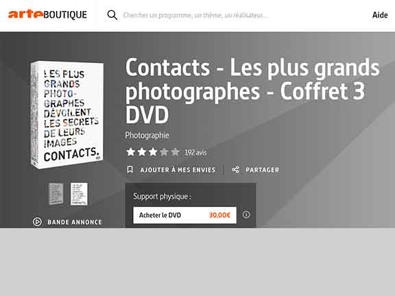 Découvrez ce magnifique coffret tiré de l’émission Contacts proposé par Arte qui décrypte la démarche photographique des plus grands photographes contemporains, révélée par la lecture et l’observation de leurs planches-contact.