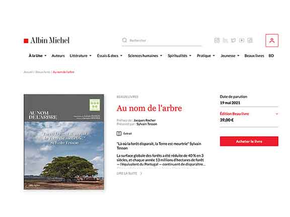 Présenté par sylvain Tesson qui déclame « Là où la forêt disparaît, la Terre est meurtrie » ce livre édité par Albin Michel est un plaidoyer indispensable pour la préservation de nos forêts. Tous les droits du livre sont reversés à la Fondation Yves Rocher pour planter des arbres.