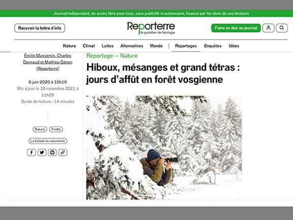 Reporterre.net - Hiboux, mésanges et grand tétras : jours d’affût en forêt vosgienne