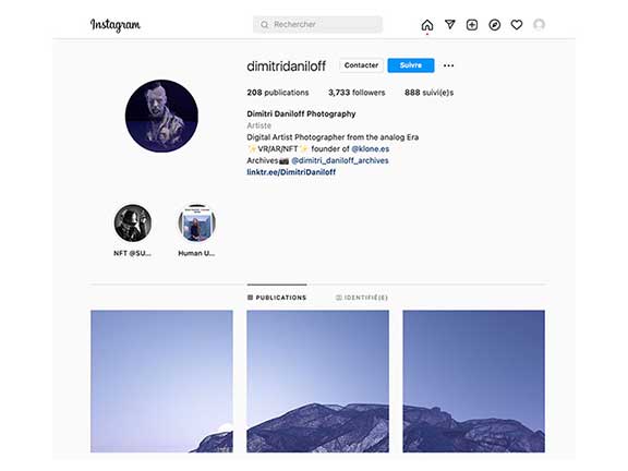 Le compte Instagram de l’artiste photographe, fondateur du studio Klone, pionnier dans les NFT.