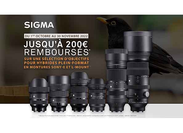 SIGMA : Jusqu'à 200 euros remboursés sur une sélection d'objectifs pour hybrides plein format.