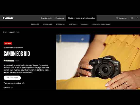 Plus abordable, l’ EOS R10 s’adresse à un public de passionné désireux en offrant un capteur APS-C d’une définition de 24 mégapixels.