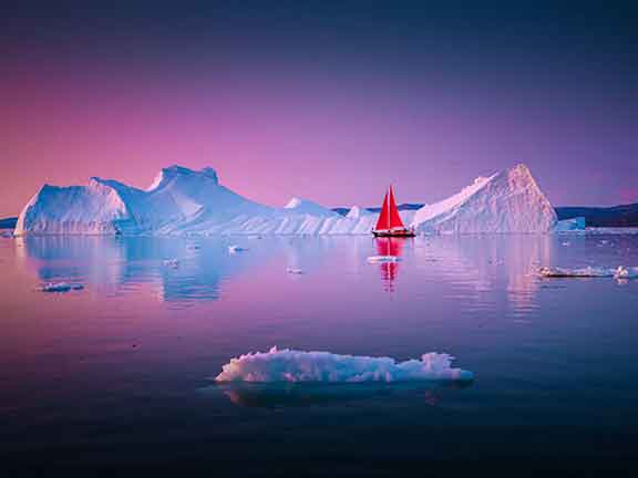Même si au Groenland il y fait froid aussi en août, Albert Dros, photographe de paysage, profite des journées de près de 24 heures où le soleil reste suspendu à l’horizon des heures durant pour pousser le Sony α7R IV et ses 61 mégapixels au maximum de ses possibilités.