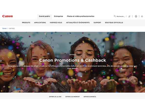 Rendez-vous sur le site Canon pour découvrir les modalités des dispositifs et offres promotionnelles offertes actuellement sur le matériel photo Canon.
